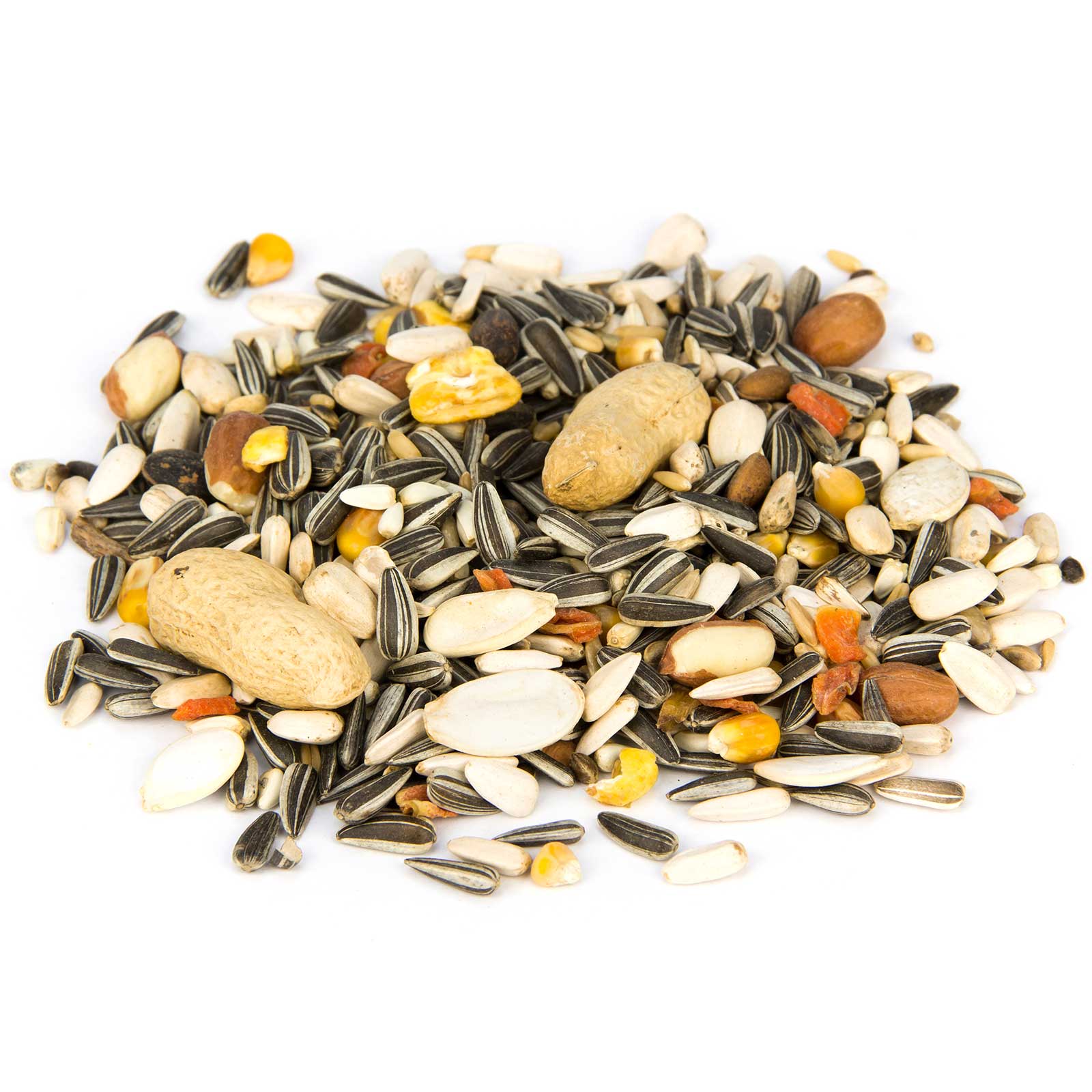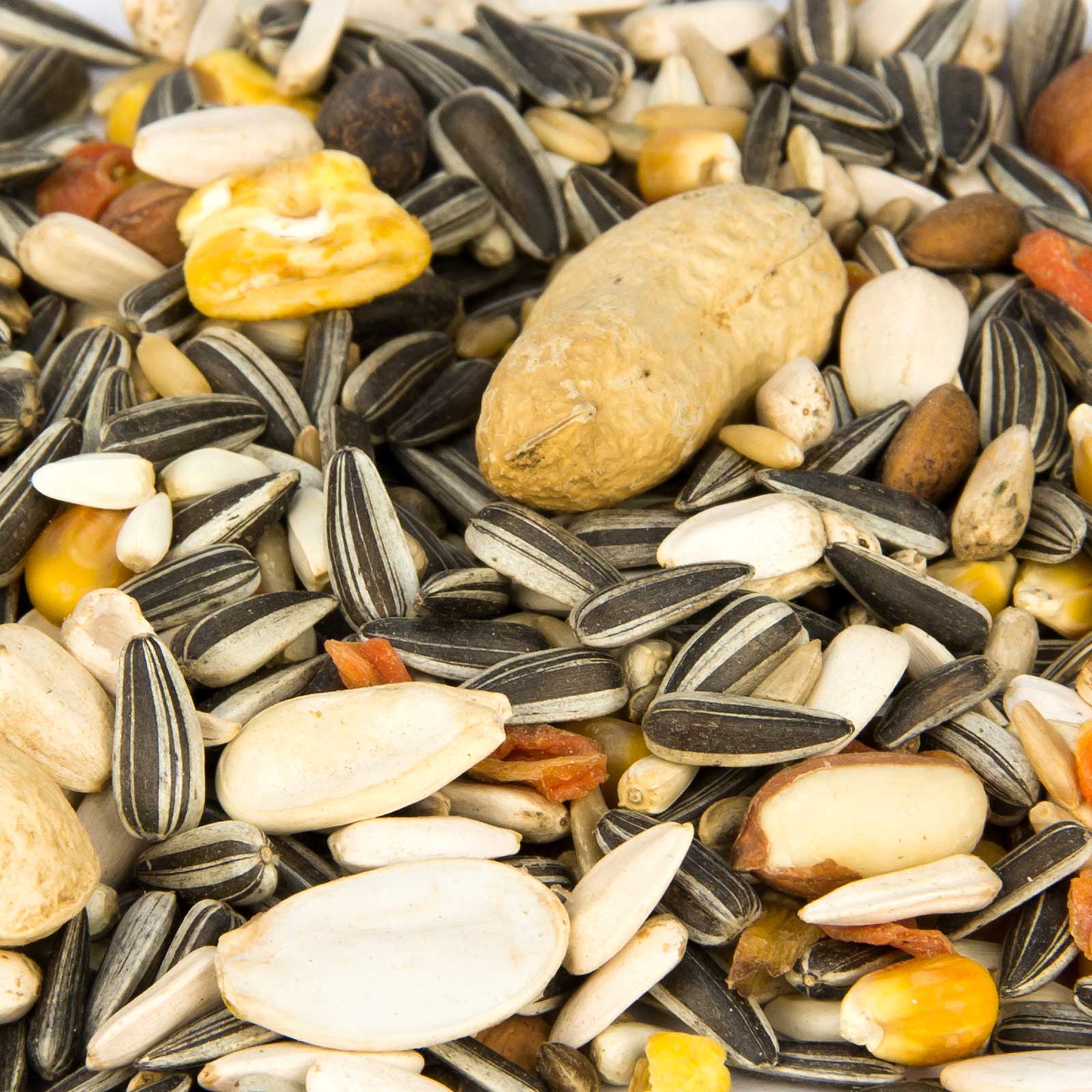 42 % floarea-soarelui dungată, 13 % floarea-soarelui albă, 3 % coajă roșie, 10 % semințe de cardi, 7 % fulgi de ovăz, 4 % nuci de pin mari, 5 % alune de pădure, 6 % porumb mic, 5 % cânepă, 3 % semințe de dovleac albe, 1 % fulgi de morcov, 1 % porumb încolțit.