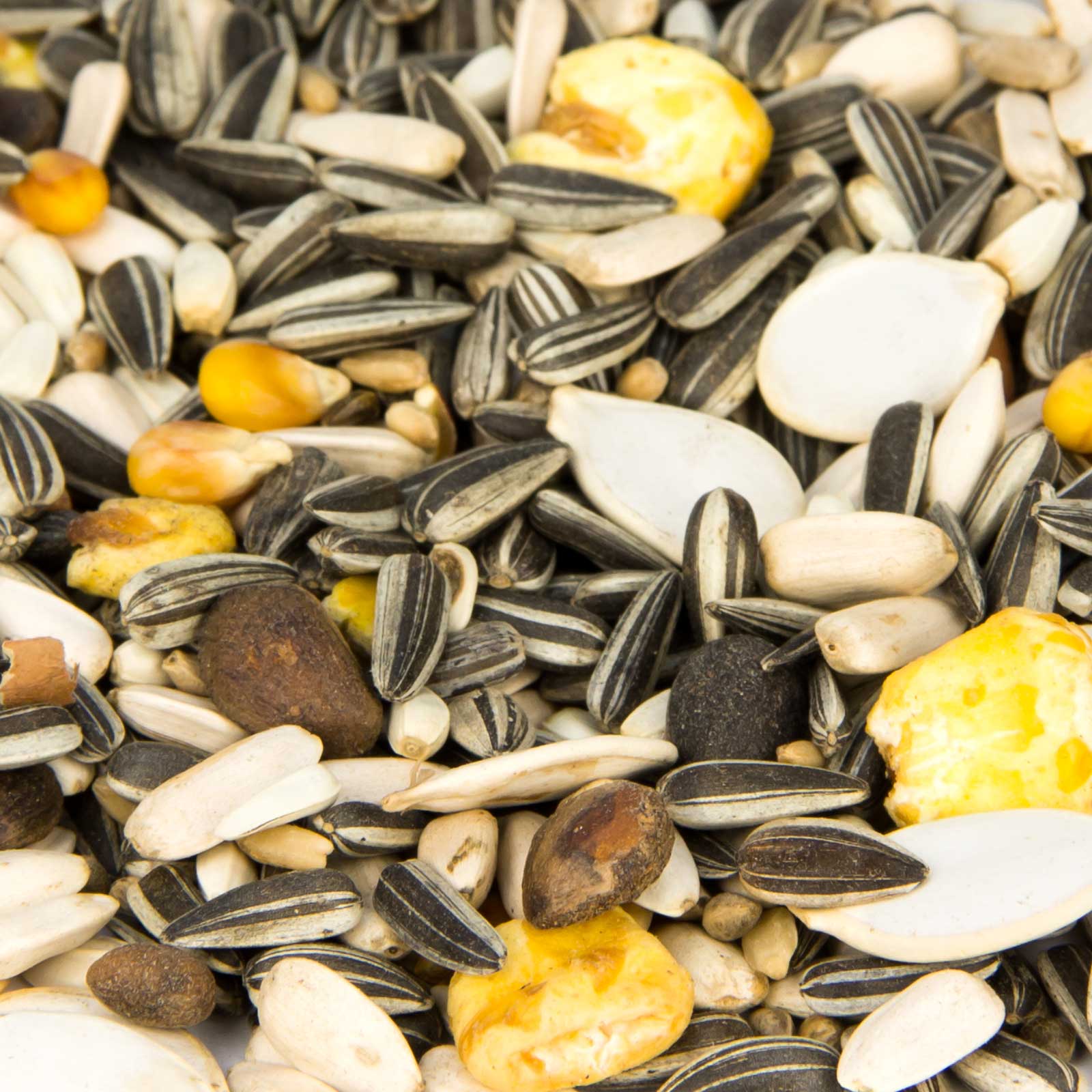 42 % floarea-soarelui vărgată, 13 % floarea-soarelui albă, 3 % coajă roșie, 12 % semințe de cardi, 4 % nuci de pin medii, 8 % fulgi de ovăz, 7 % porumb mic, 6 % cânepă, 3 % semințe de dovleac alb, 1 % fulgi de morcov, 1 % porumb încolțit.