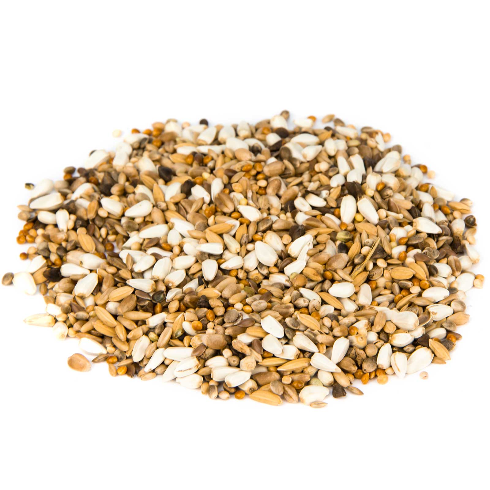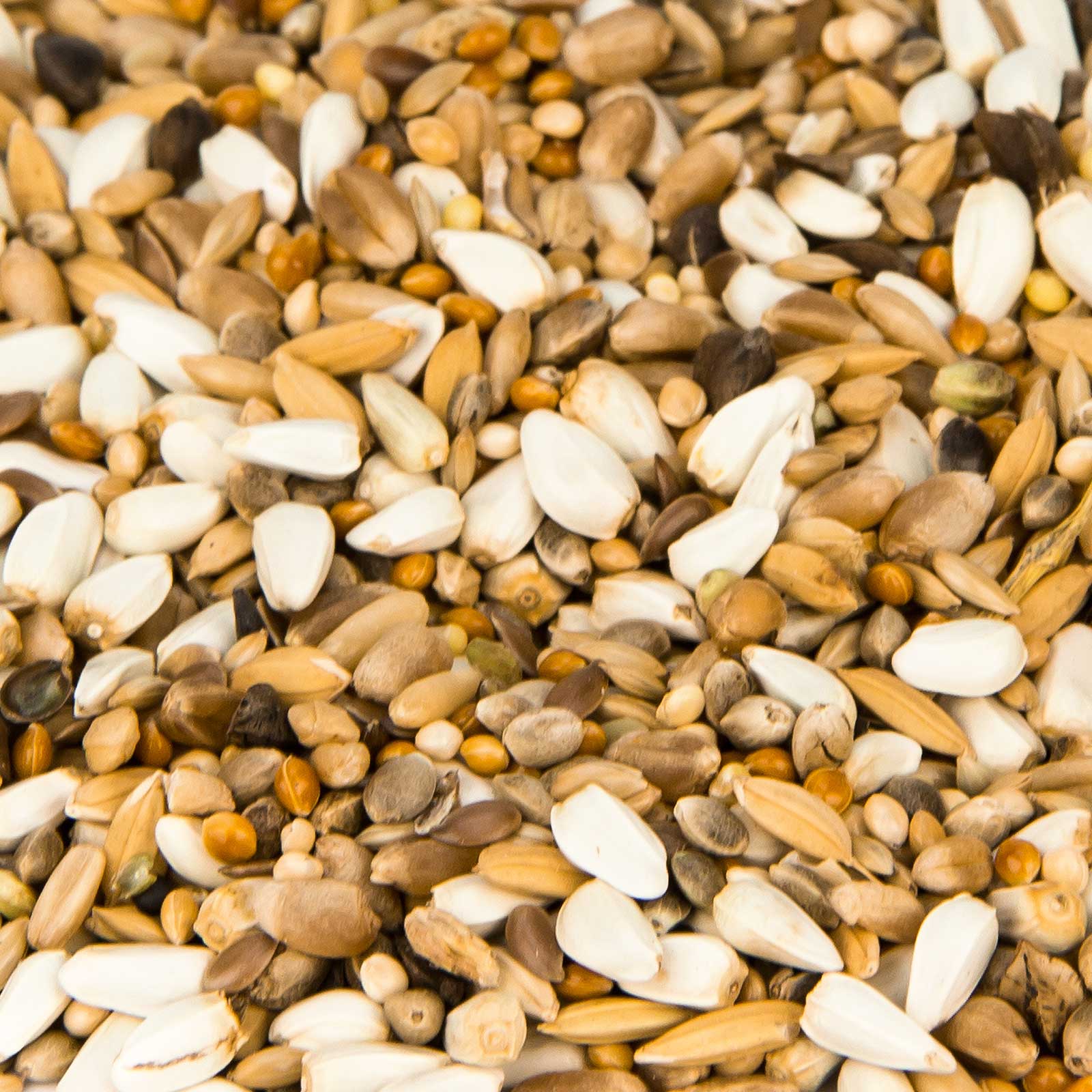 10 % mei galben, 8 % mei lucios, 8 % mei roșu, 5 % fulgi de ovăz, 30 % semințe de cardi, 5 % semințe de in, 10 % cânepă, 4 % hrișcă, 10 % grâu, 10 % orez, 10 % orez nedecorticat.