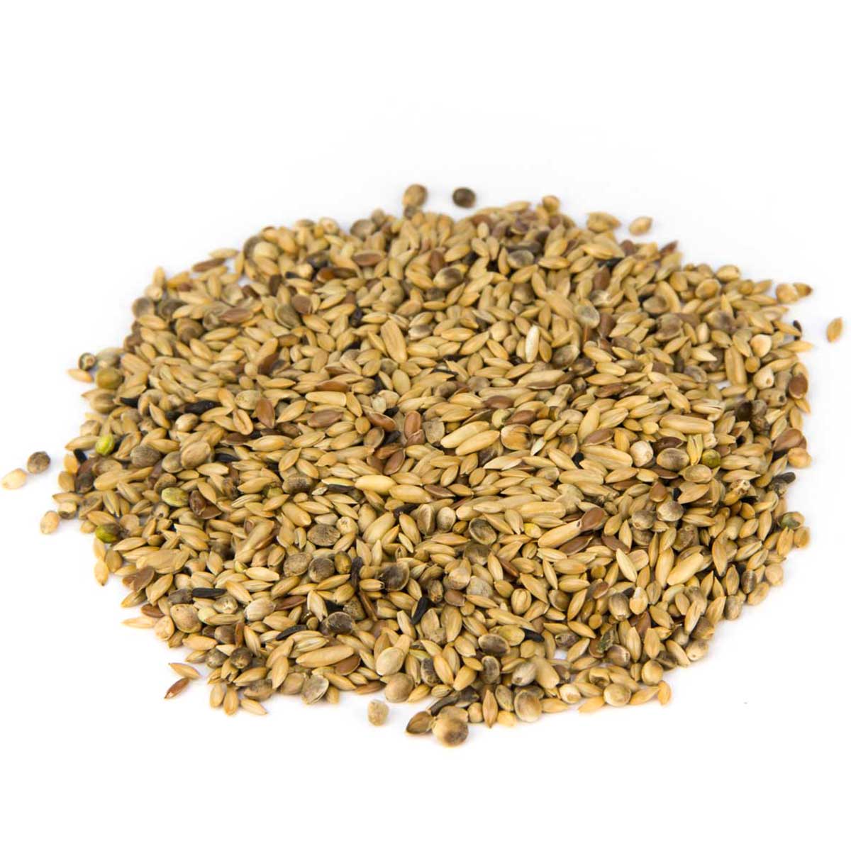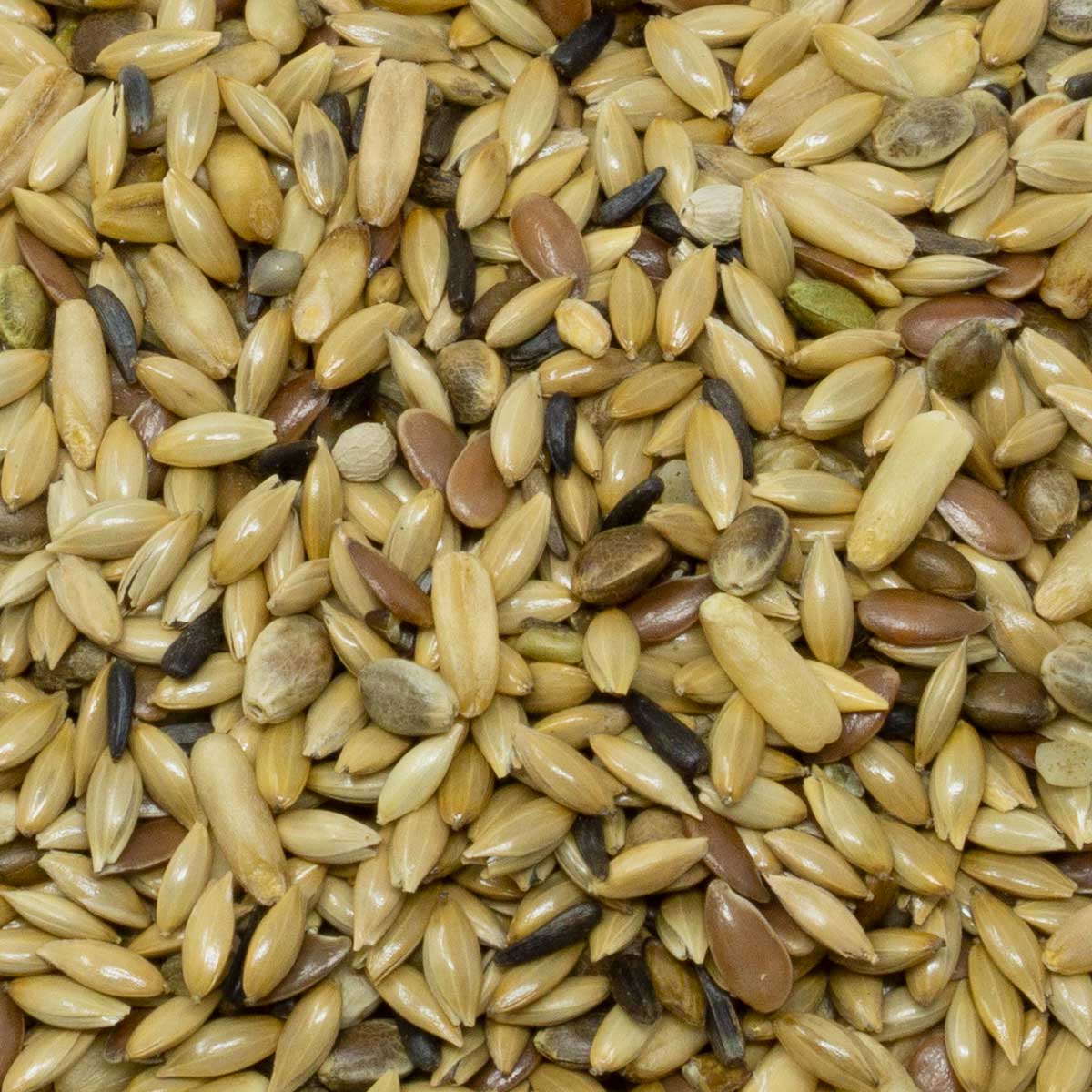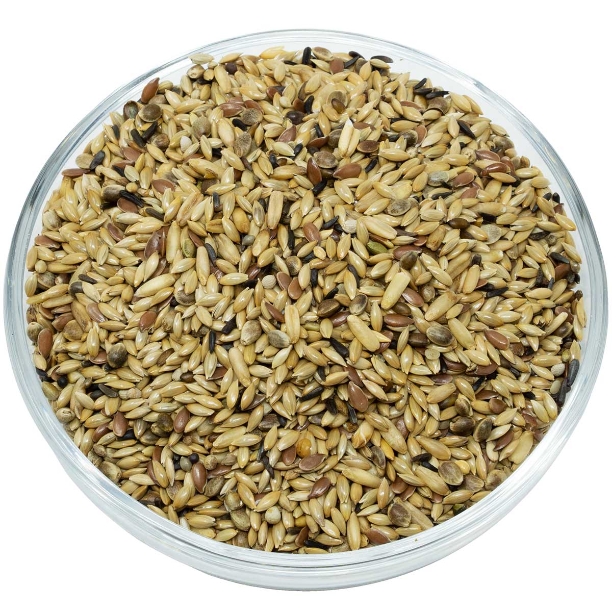 61 % semințe lucioase, 15 % fulgi de ovăz, 13 % cânepă europeană, 8 % semințe de in, 3 % semințe negre.