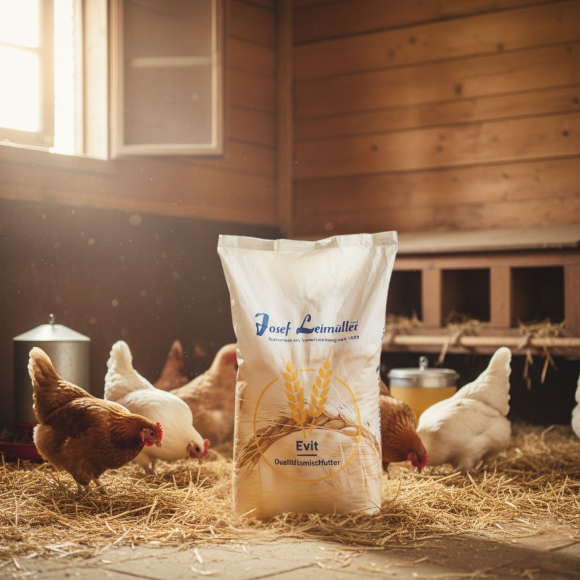 Hrana pentru păsări de curte Leimüller cu 6 cereale este o hrană mixtă completă de care se vor bucura toate rasele de păsări. Amestecul variat de cereale acoperă mulți nutrienți importanți: grâul și porumbul acționează ca furnizori de energie. Semințele, cum ar fi semințele de floarea-soarelui, furnizează păsărilor de curte uleiuri valoroase și acizi grași esențiali. Hrana este consumată cu poftă de găini, găini ouătoare și cocoși. Aceasta este curățată de mai multe ori și, prin urmare, este lipsită de praf. Toate ingredientele amestecului de cereale sunt 100% lipsite de inginerie genetică (OMG) și sunt certificate cu sigiliul de calitate pastus+ AMA.