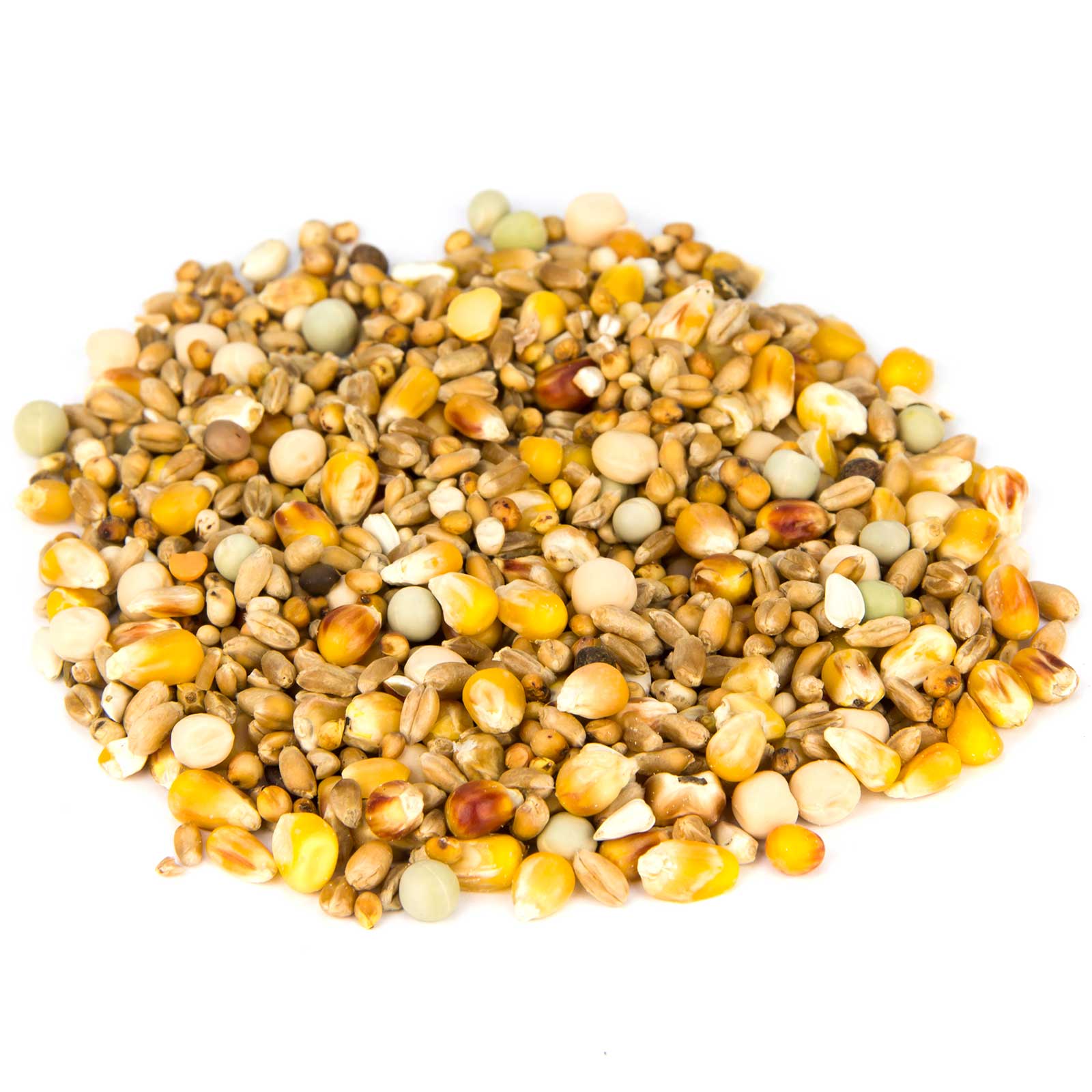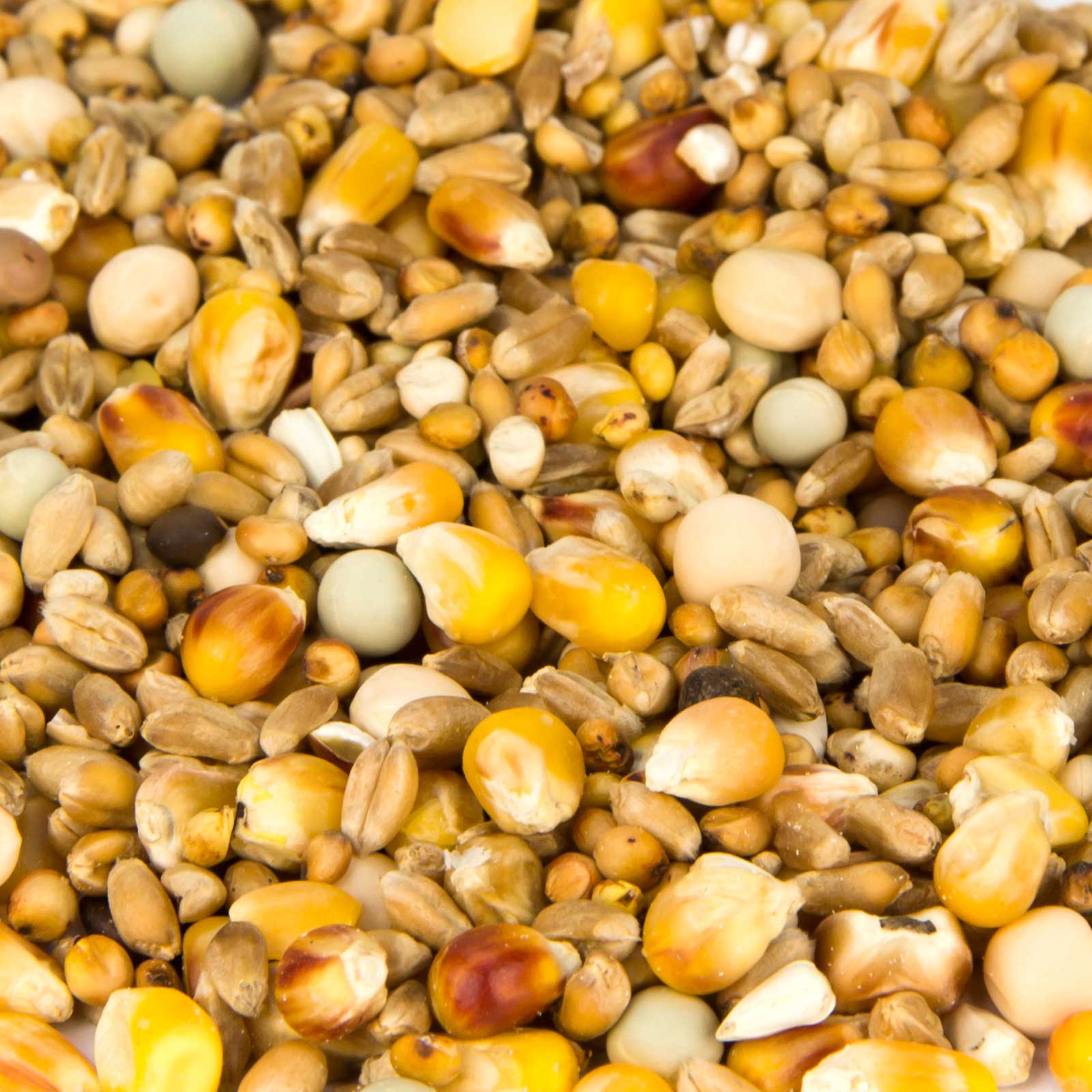 39 % porumb mijlociu, 31 % grâu, 5 % mazăre mică, 9 % mazăre mare, 10 % boabe de milo, 3 % dari, 1 % semințe de cardi, 1 % vetches, 1 % mei galben.