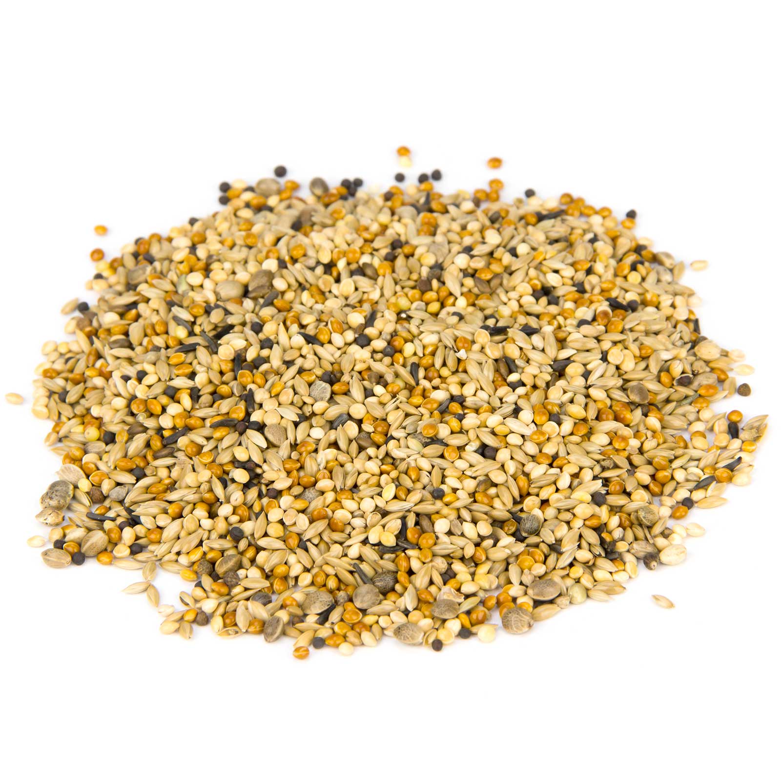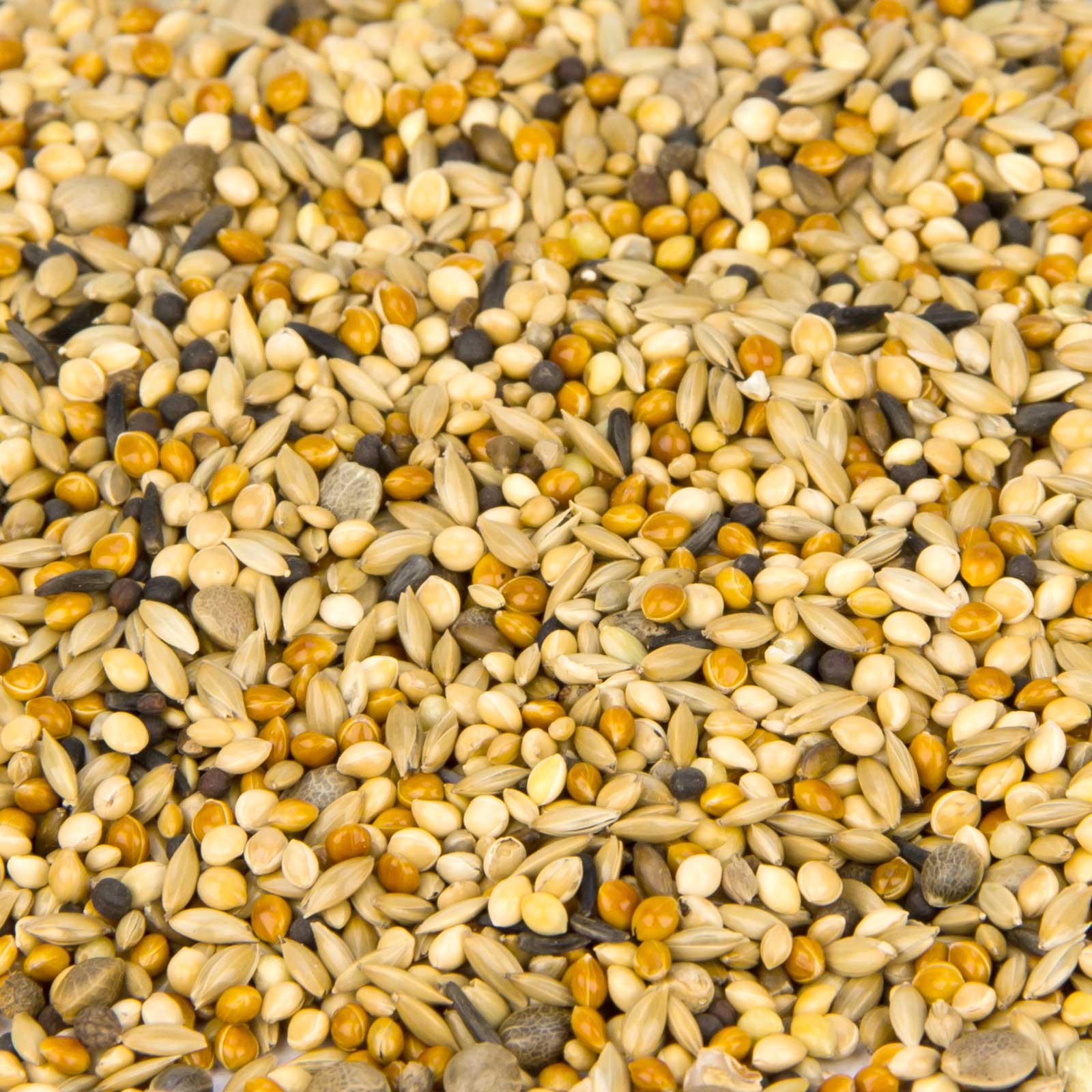 29 % mei lucios, 27 % mei roșu, 27 % mei galben, 5 % mei Senegal, 7 % cânepă, 2 % nap roșu, 2 % semințe de negru, 1 % semințe de perilla maro.
