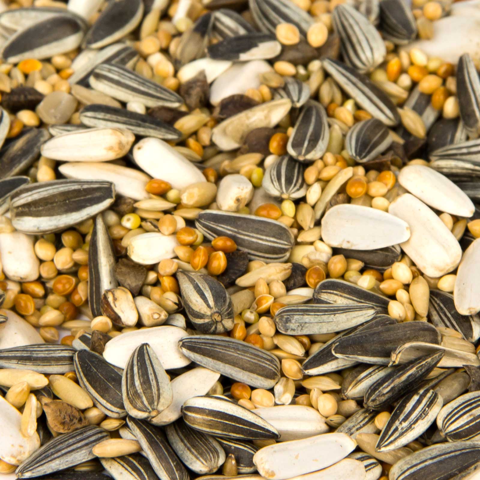 31 % mei galben, 27 % floarea-soarelui dungată, 5 % floarea-soarelui albă, 10 % mei roșu, 10 % semințe lucioase, 10 % fulgi de ovăz, 4 % hrișcă, 3 % semințe de cardi.