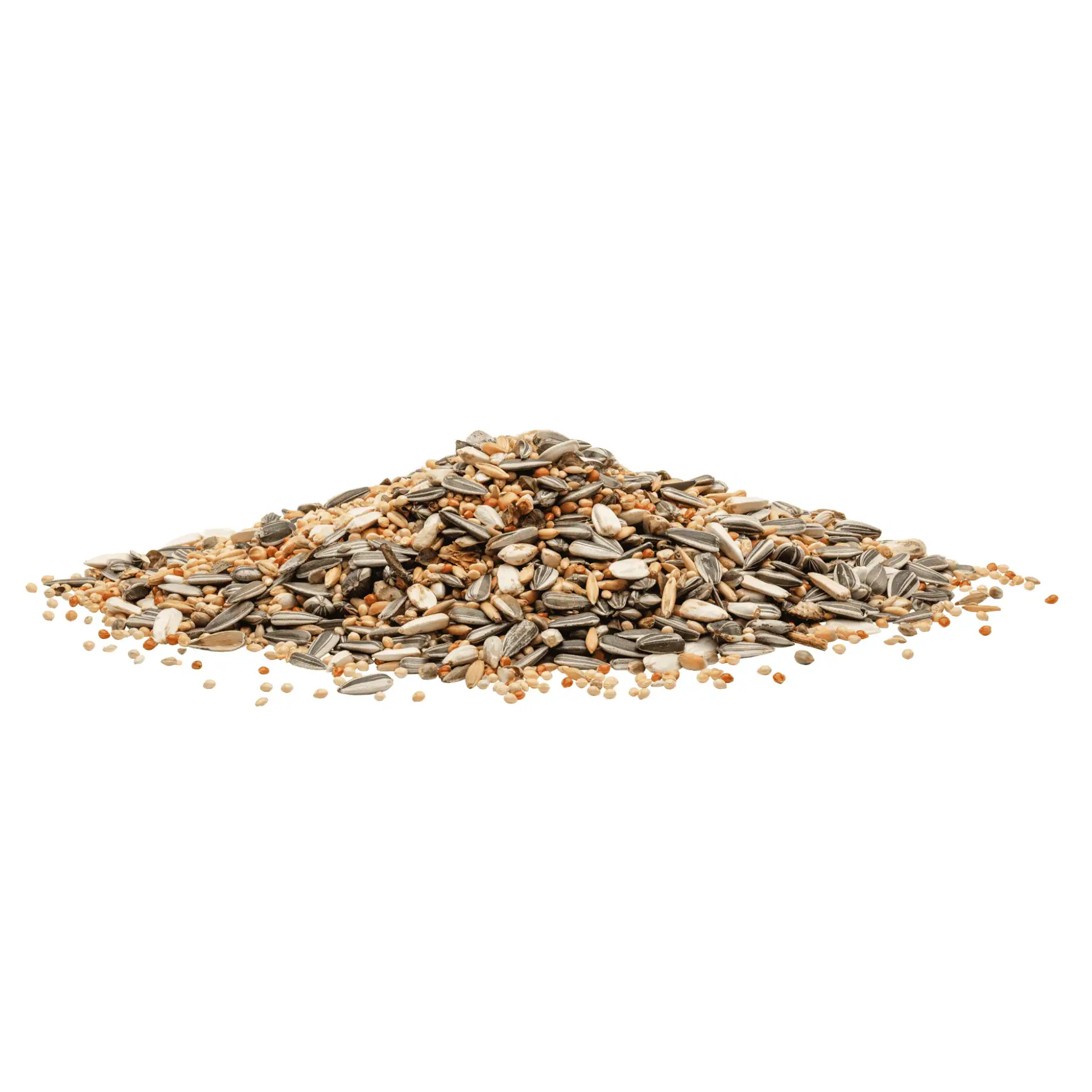 37 % mei galben, 8 % mei roșu, 5 % semințe lucioase, 8 % fulgi de ovăz, 9 % grâu, 4 % hrișcă, 6 % boabe de milo, 2 % cânepă, 2 % semințe de cardi, 13 % floarea-soarelui vărgată, 3 % floarea-soarelui albă, 3 % ovăz.