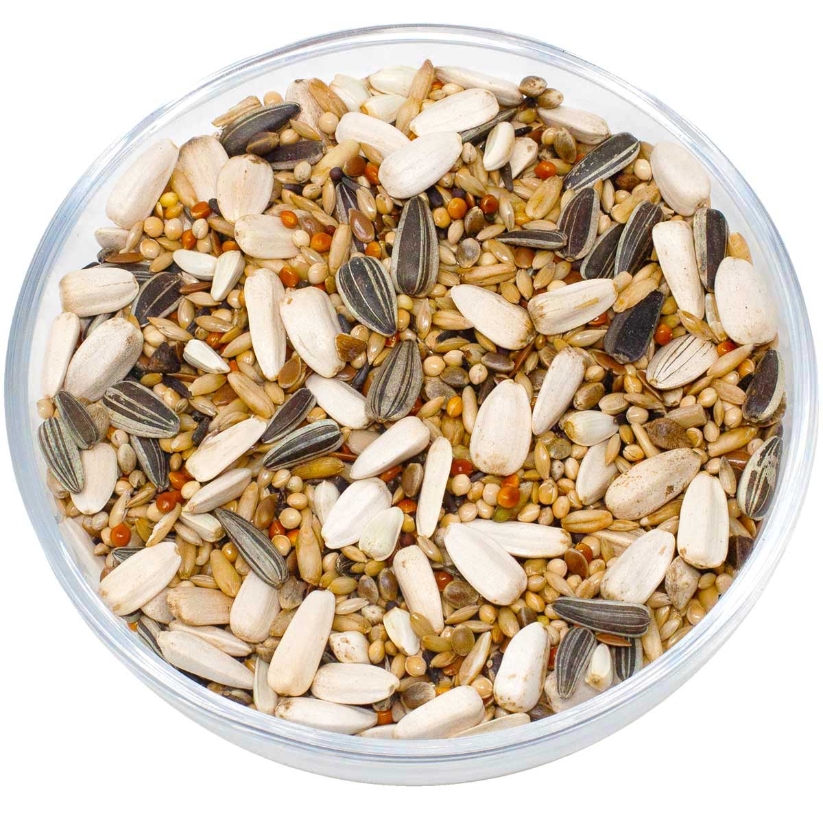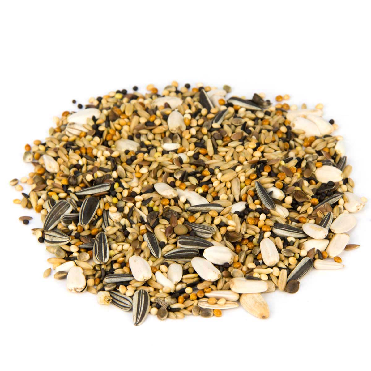 21 % semințe lucioase, 20 % mei galben, 9 % mei roșu, 9 % fulgi de ovăz, 9 % floarea-soarelui dungată, 9 % floarea-soarelui albă, 6 % semințe negre, 6 % semințe de in, 4 % cânepă, 3 % nap negru, 2 % hrișcă, 2 % semințe de cardi.