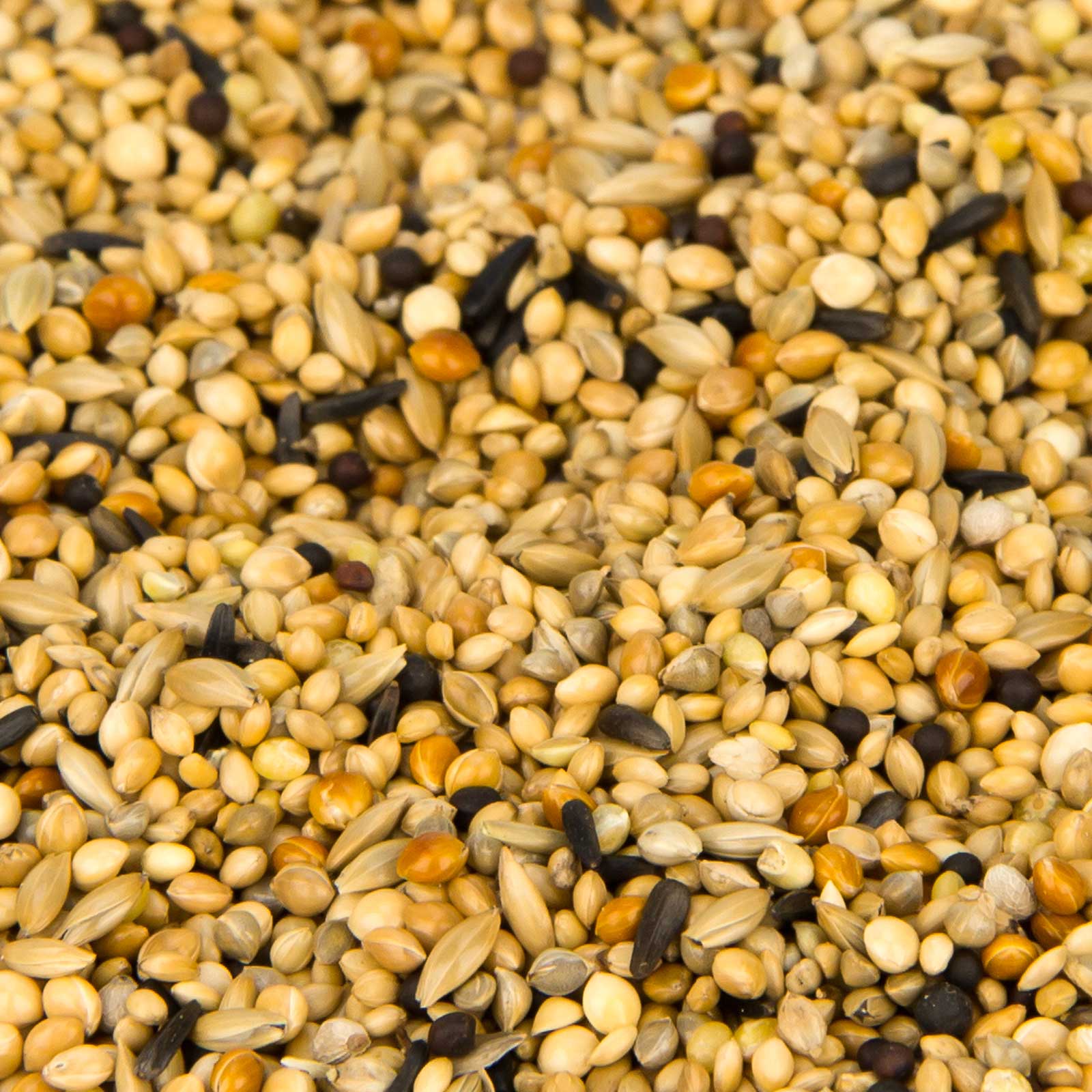 30 % mei galben, 23 % mei Senegal, 20 % mei Plata, 10 % semințe lucioase, 8 % mei roșu, 2 % mei japonez, 4 % nap negru, 3 % semințe negre.